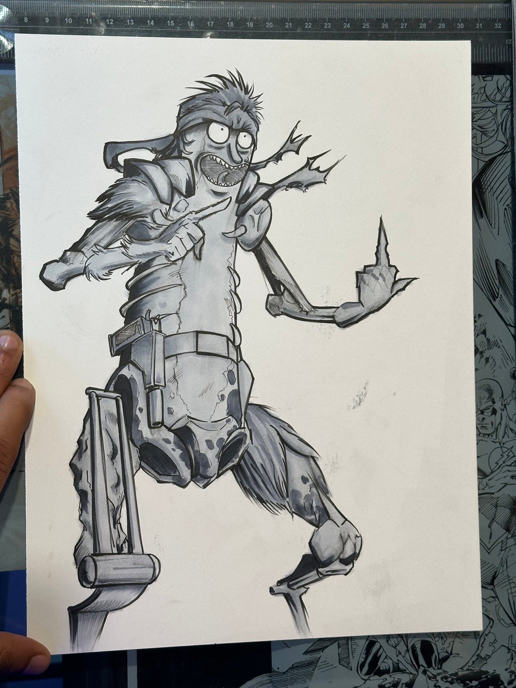 Love nightmare fueled conspiracy chaos? Baby have I got the doodle for YOU! Done live on stream via suggestion of Amanda Brian, founder of MGSCON! 9x12 Bristol paper, done with pencils, inks and ink washes, and cool gray COPIC markers!